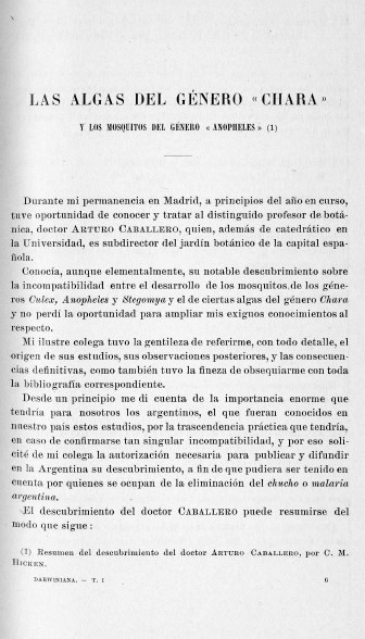 Las algas del género «Chara» y los mosquitos del género «Anopheles»