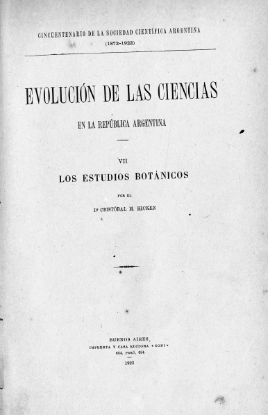Evolución de las Ciencias en la República Argentina. VII. Los Estudios Botánicos